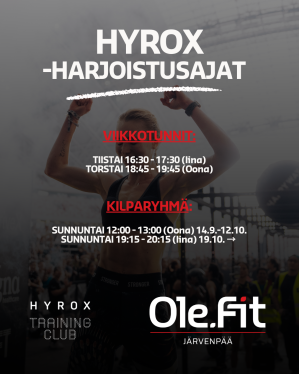 - Ole.Fit Järvenpään jäsenille HYROX -viikkotunnit sekä ryhmäliikunta 20€/4vko